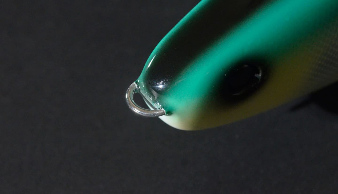バッファローアイを採用し可動域を広くすることにより、ルアーを止めた時に、ボディにラインが触れるタイミングを遅らせルアーを大きく左右にスライドさせることを可能にしました。